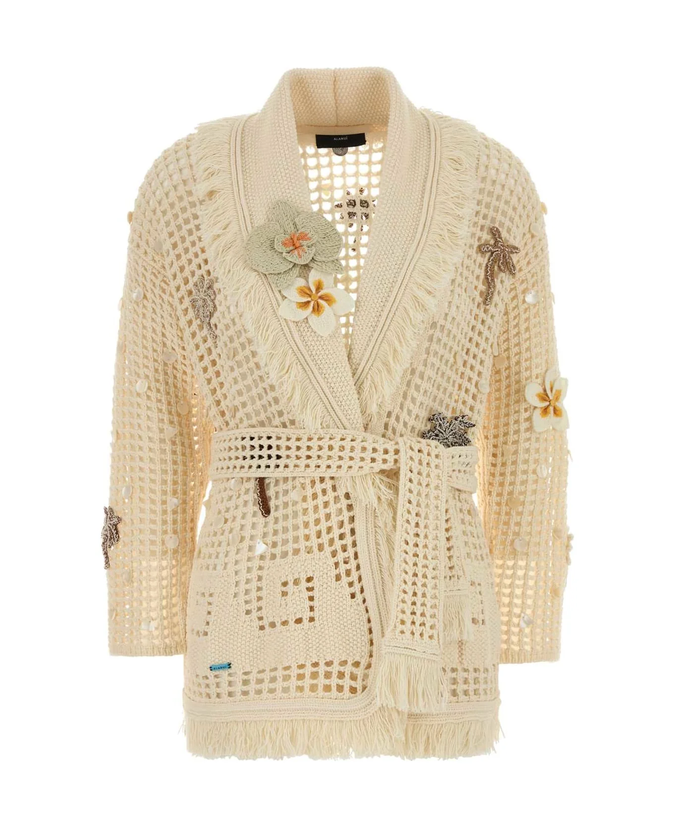Cream Crochet Where The Waves Begin Cardigan from Alanui Made in: Italy Color: ARPA Model number: LWHB064R26KNI0130F0FARPA