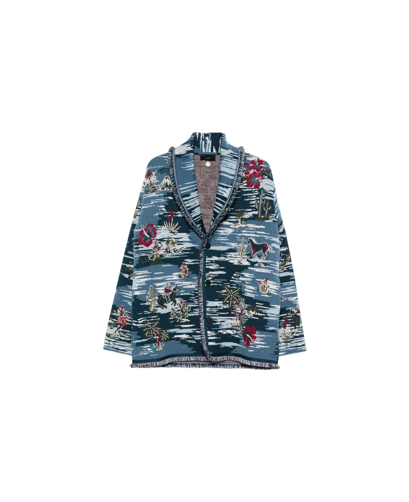 blue frayed edges tapestry pattern button fastening Made in: Italy Color: BLUE Model number: LMHB038E25KNI006