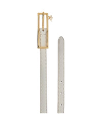 Slim White Leather Belt With Logo Charm 1.5cm