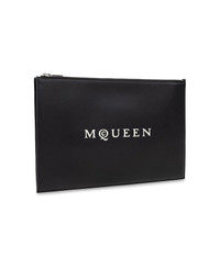 Discover the epitome of contemporary elegance with this black leather envelope clutch by Alexander McQueen. Crafted from smooth, premium calfskin with a refined matte finish, its subtly structured, rectangular silhouette is accentuated by crisp, defined edges embodying effortless sophistication. The striking front features the iconic designer's name in bold white letters, with the stylized C as a distinctive homage to the brand's unmistakable identity. The minimalist, monochromatic design deliberately eschews embellishments, focusing on timeless appeal. A robust silver-tone zipper secures your essentials, marrying bold aesthetics with uncompromising function. Why choose this product? Exquisite, durable leather with an impeccable matte finish Signature Alexander McQueen artistry recognizable and exclusive Modern, minimalist form for versatile styling Reliable silver zipper closure for enhanced security Perfect blend of British tradition and innovative luxury Composition: 100% Leather 100% Leather Made in: Italy Color: Black Size and fit: - Height: 24cm - Width: 35,5cm Model number: 8361481AAU61080