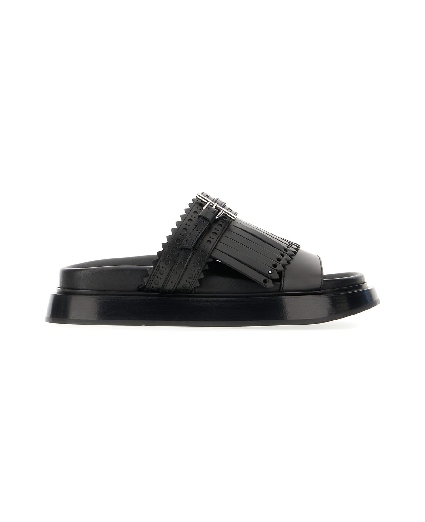 Black Leather Slippers