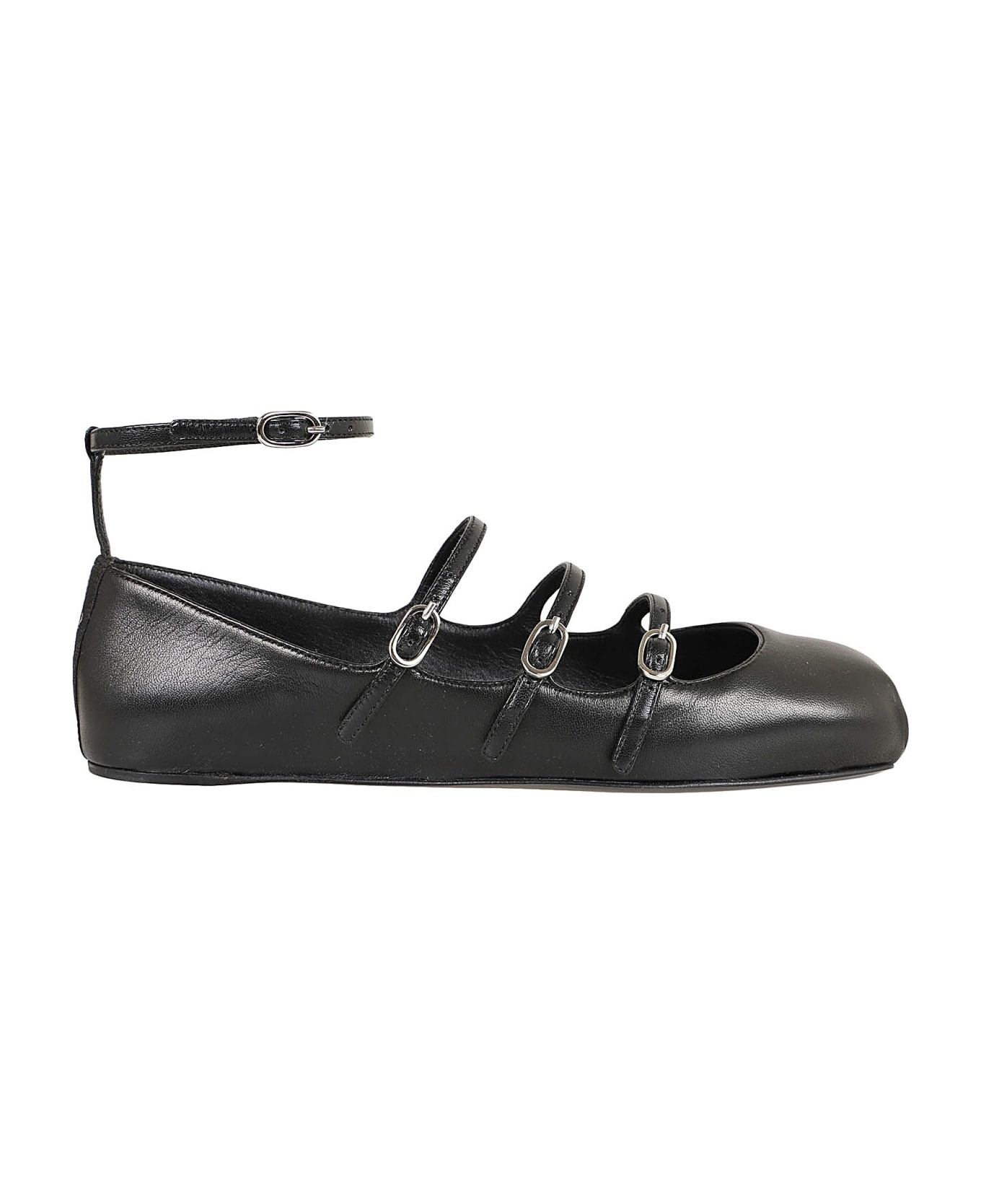 Buckled-straps Square-toe Ballerina Shoes