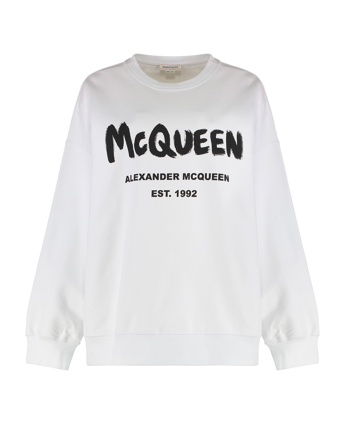 Cotton crewneck sweatshirt with a printed logo on the front. ribbed cuffs and bottom hem. ideal for casual outfits, it offers comfort and versatility for being worn on different occasions. perfect for the autumn and winter seasons. 100% cotton, 97% cotton, 3% elastane Composition: 100% % Cotton, 97% % Cotton, 3% % Elastane Made in: Italy Color: White Model number: 659975QZAD50909