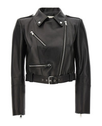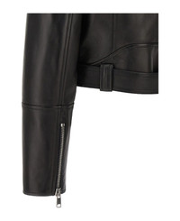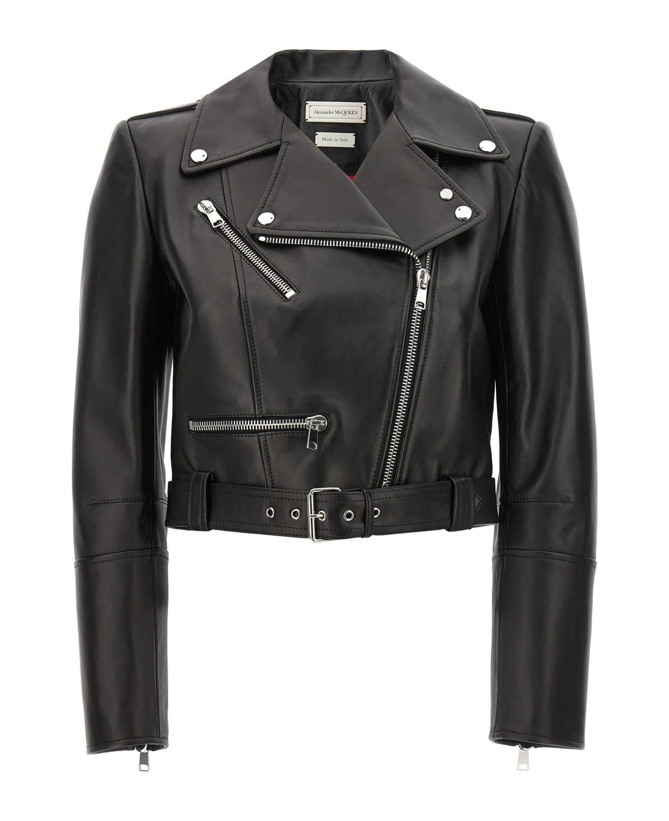Cropped Biker Jacket With Matching Belt In Smooth Leather
