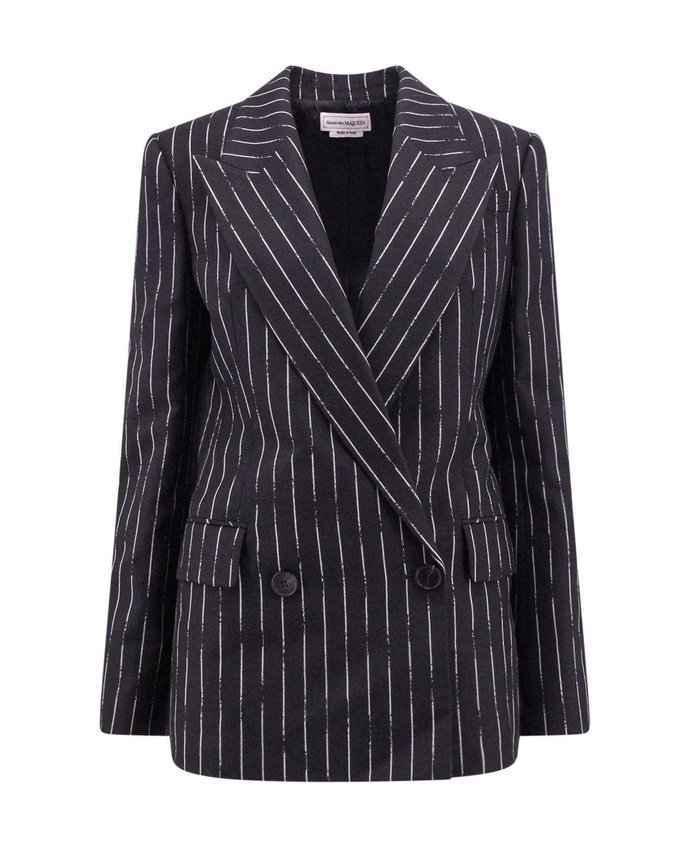 Double-breasted Broken Pinstripe Blazer