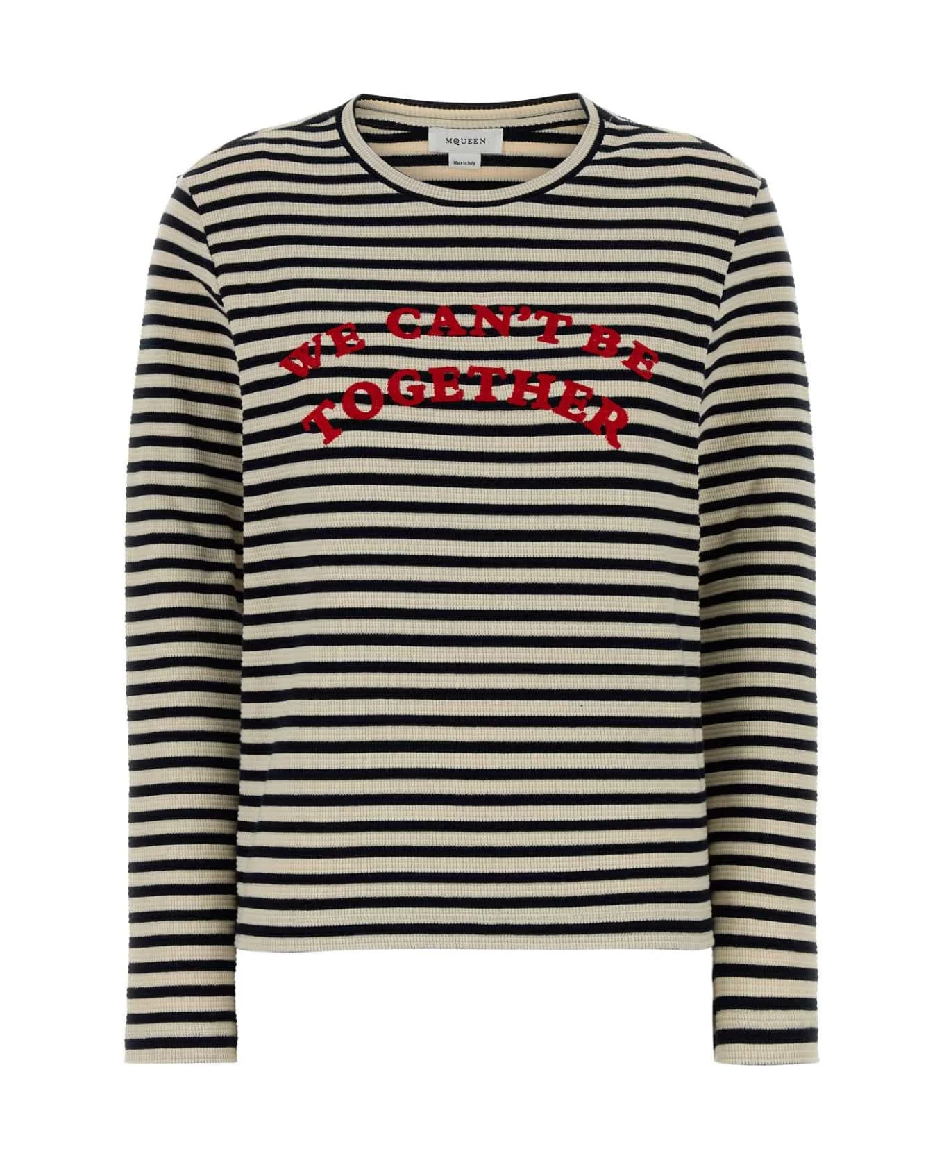 Embroidered Stretch Cotton T-shirt from Alexander McQueen Made in: Italy Color: NAVYIVORY Model number: 857886QLAFI4046