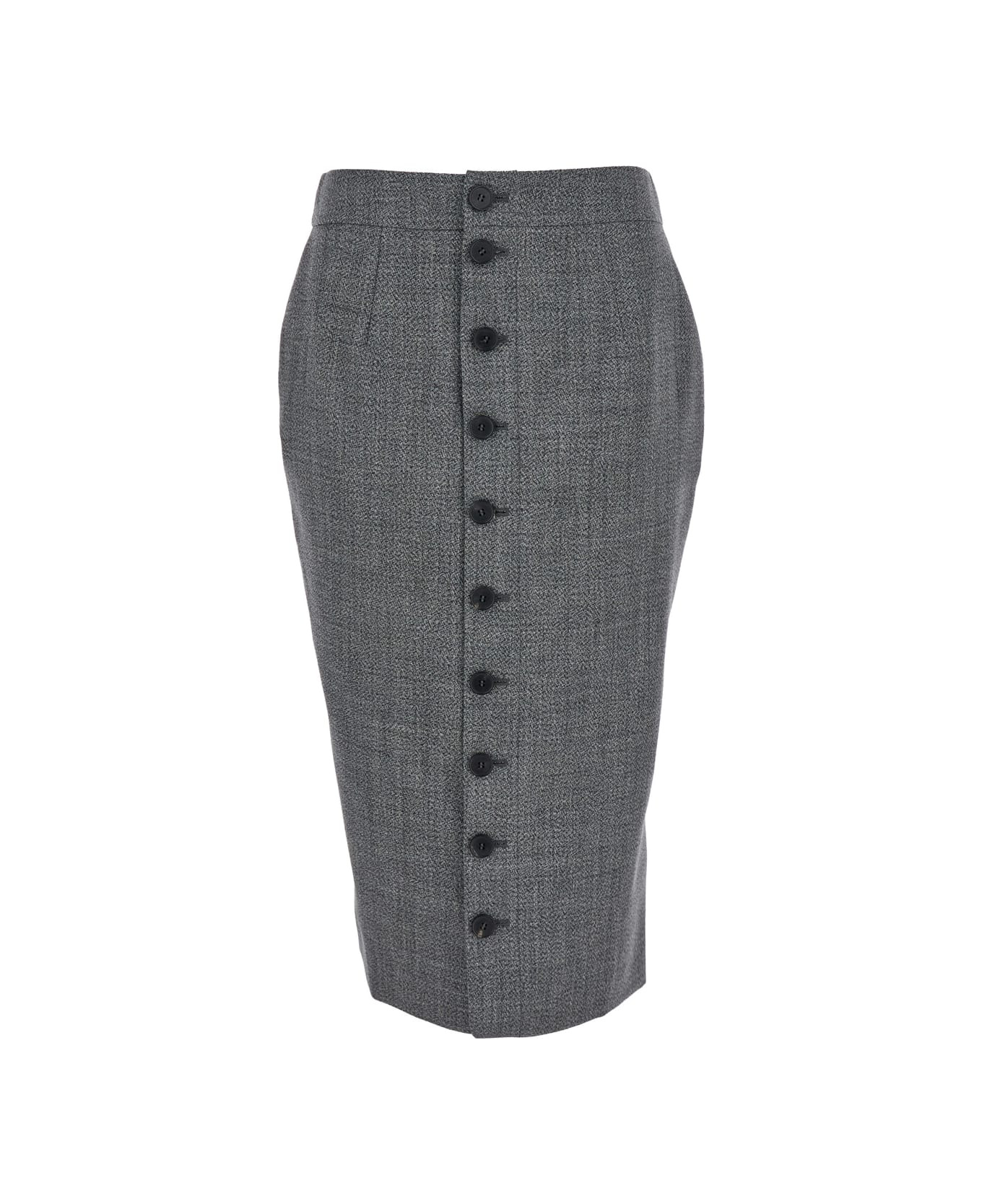 Grey Skirt With Button Closure In Wool Woman