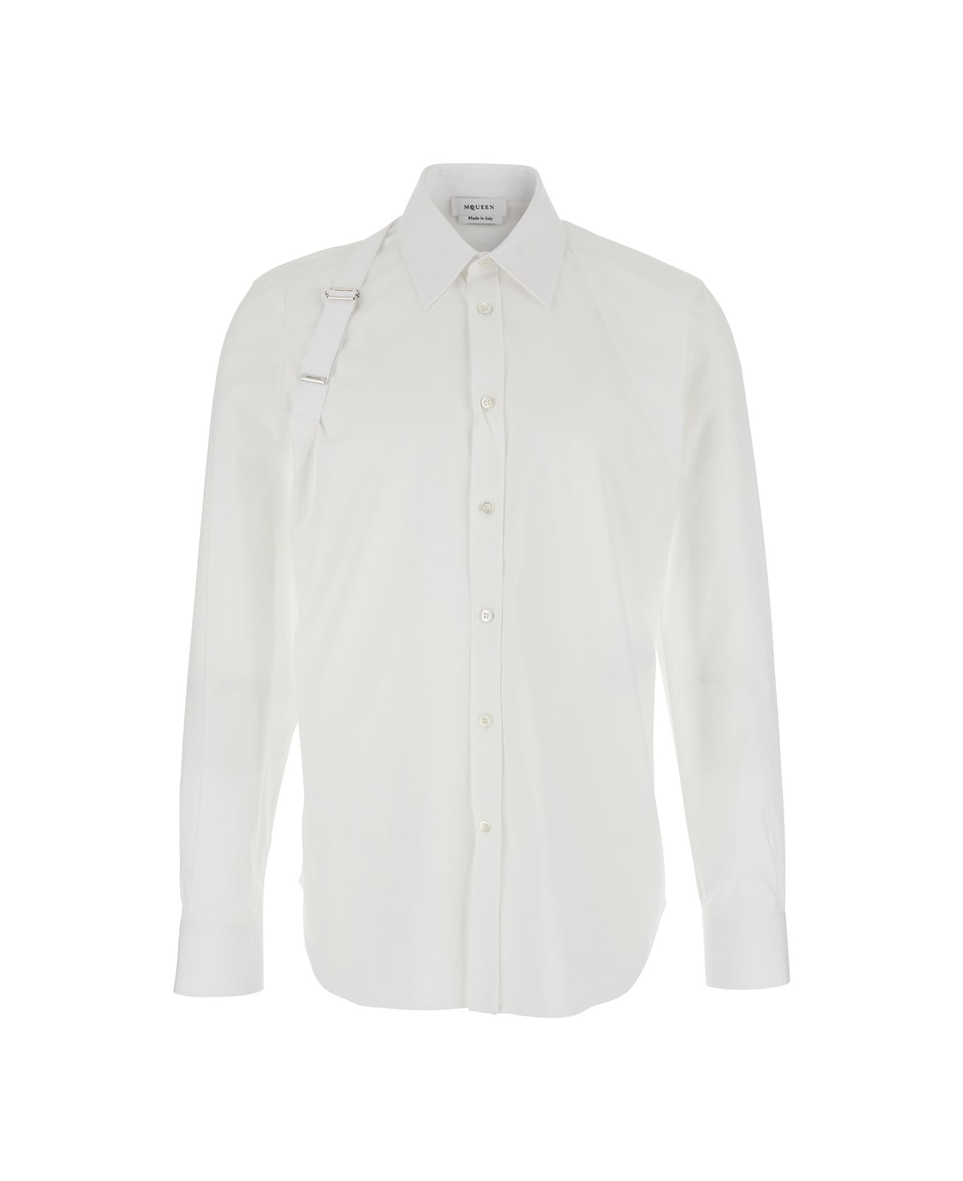 'harness' White Shirt With Clasic Collar And Strap Detail On The Sleeve In Cotton Man