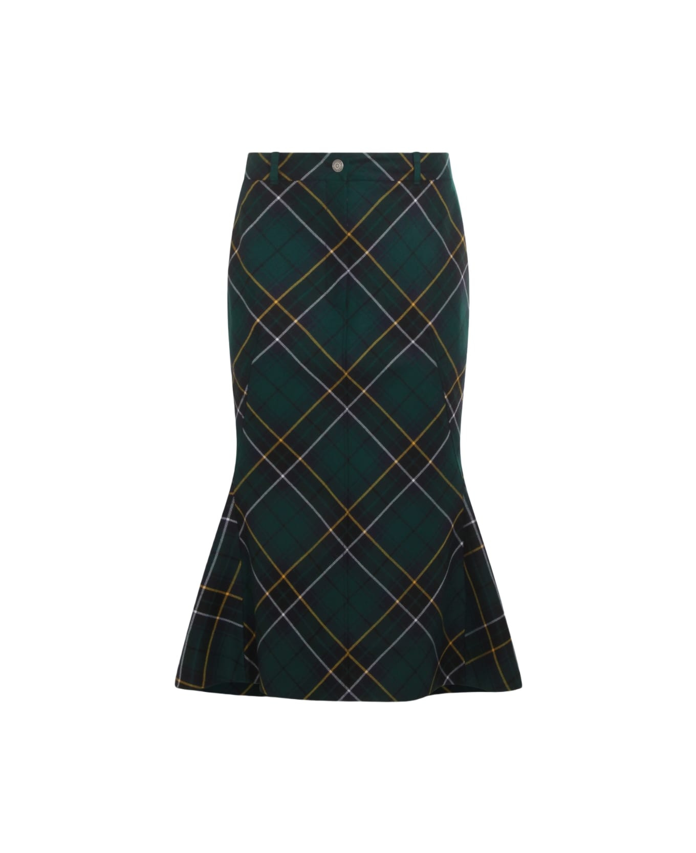 Navy Green And Yellow Wool Tartan Pencil Skirt