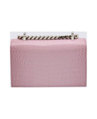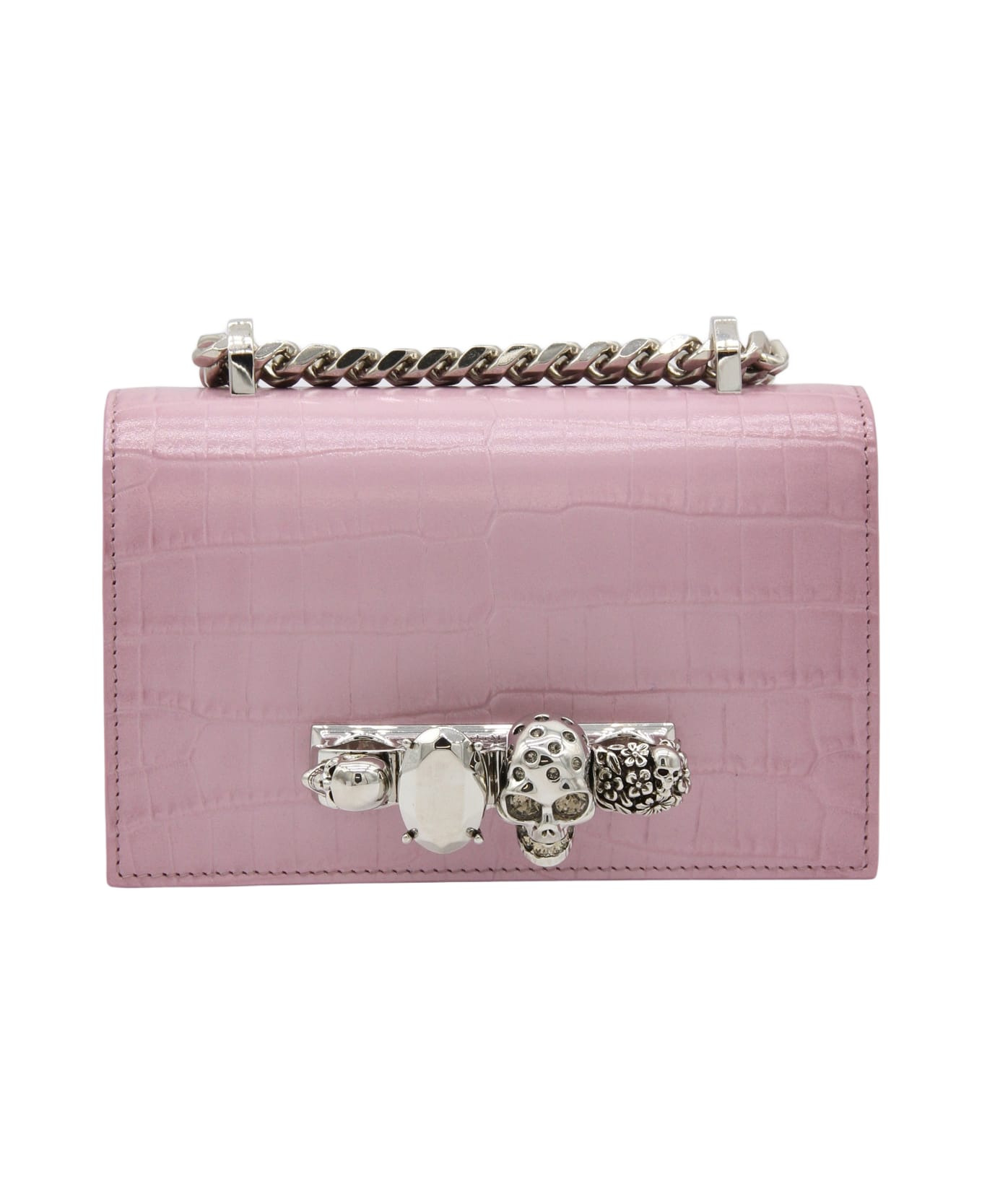 Pink leather Jewelled Satchel mini shoulder bag from McQueen featuring frontal fastening, chain, silver tone hardware and inside pocket. Composition: _, 100% Le Made in: Italy Color: Pink Model number: 6531341HB025815