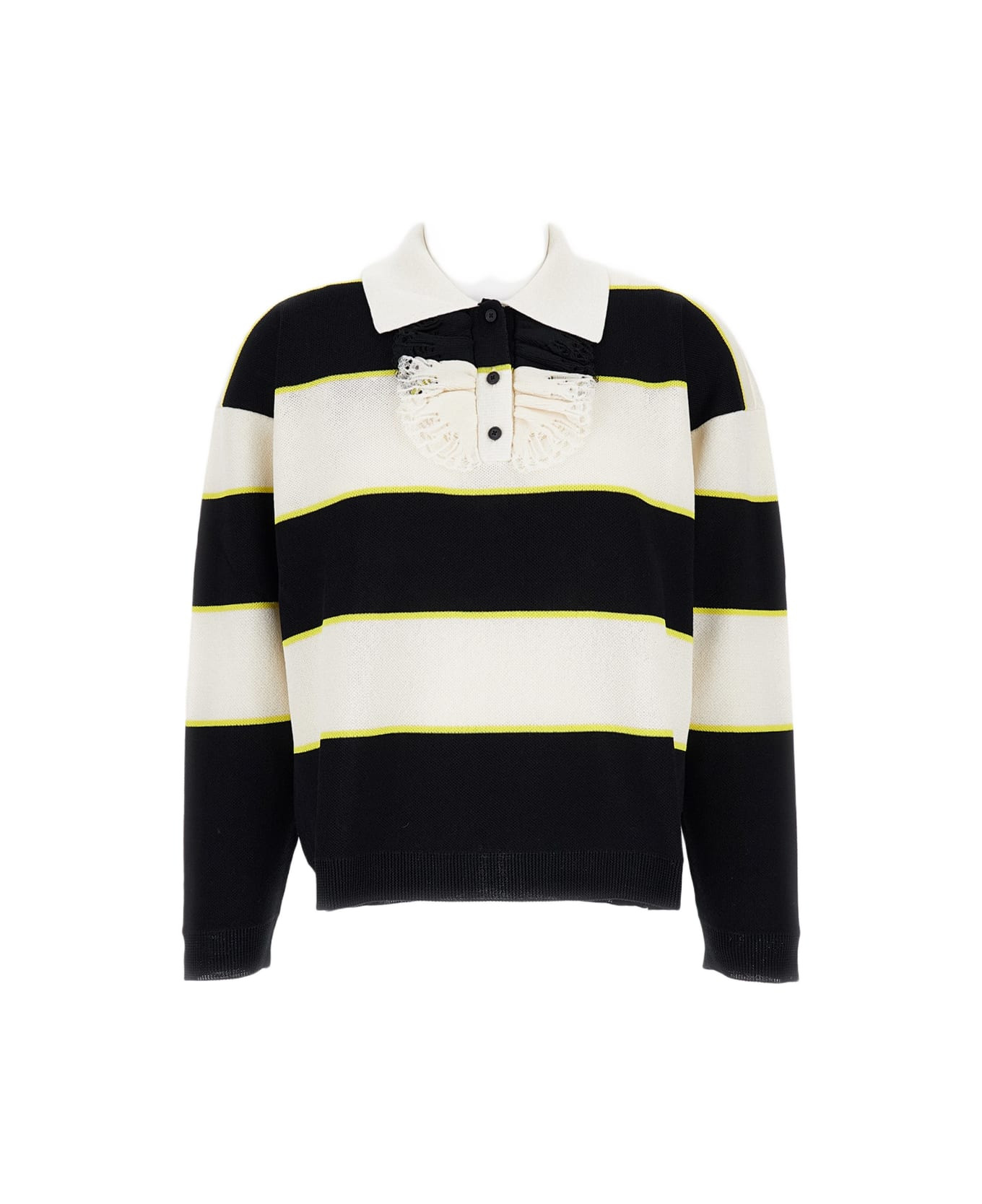 Polo made in Italy in silk with horizontal stripes pattern. Ruffled front buttoning. Beige color Composition: 100% Silk Made in: Italy Color: Black Model number: 839848Q1BEQ1378