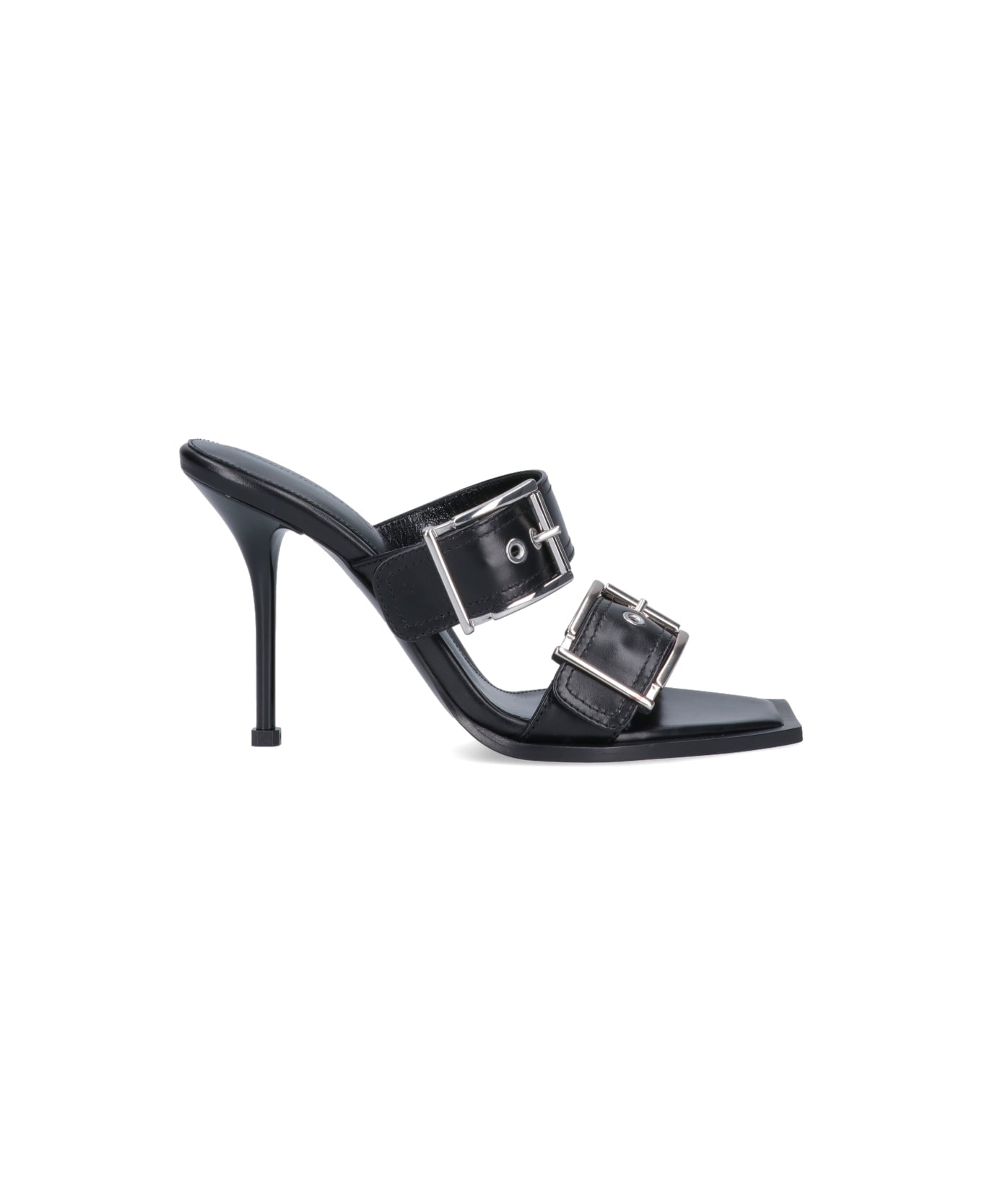 Double Buckle Punk Mule in Black/silver