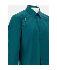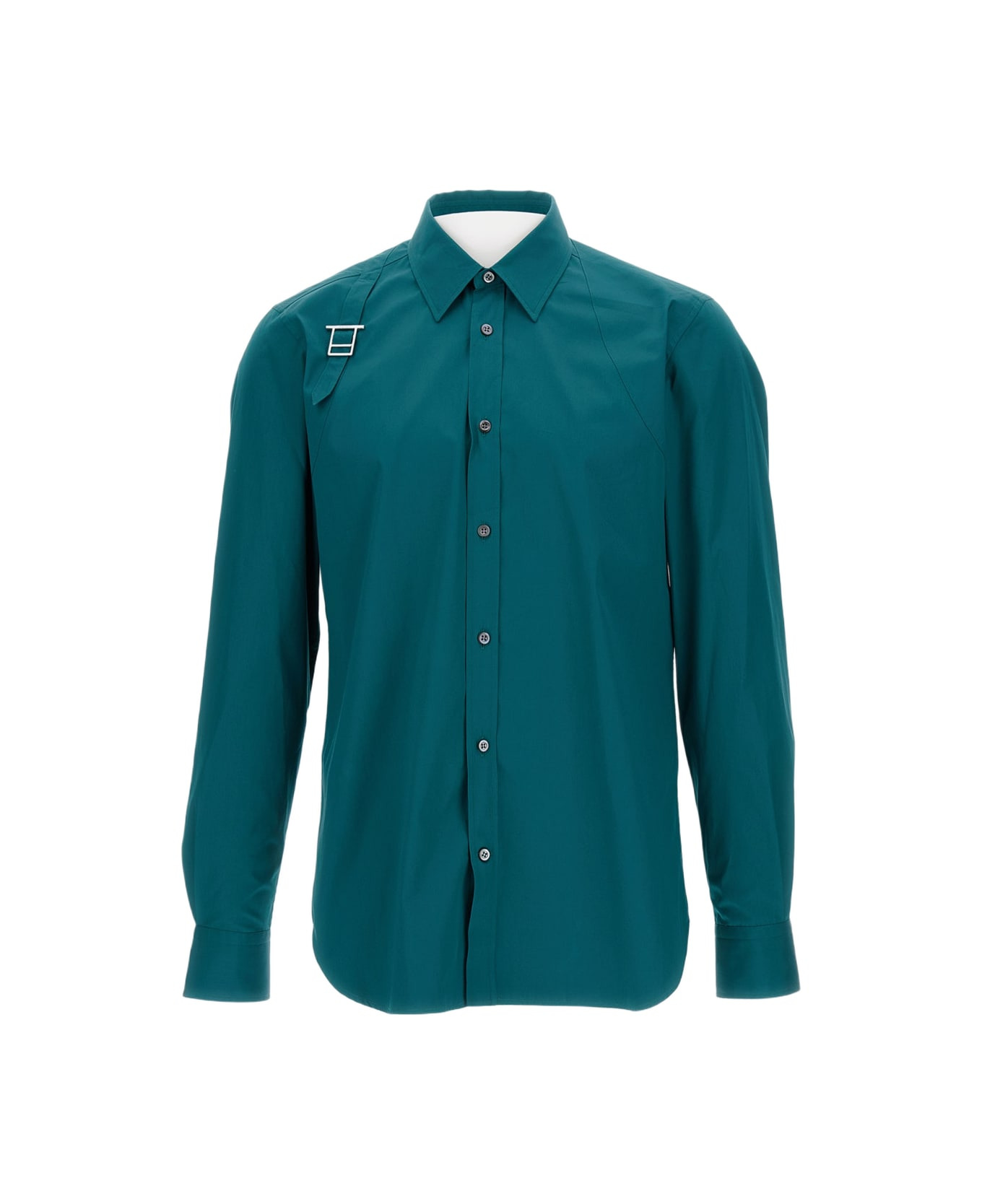 Slim fit shirt with round bottom, classic closure, buckle detail on the left shoulder. Regular fit, green color Composition: 100% Cotton Made in: Romania Color: Green Model number: 828259QNAAX3057