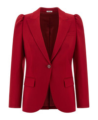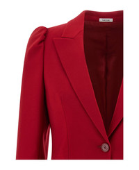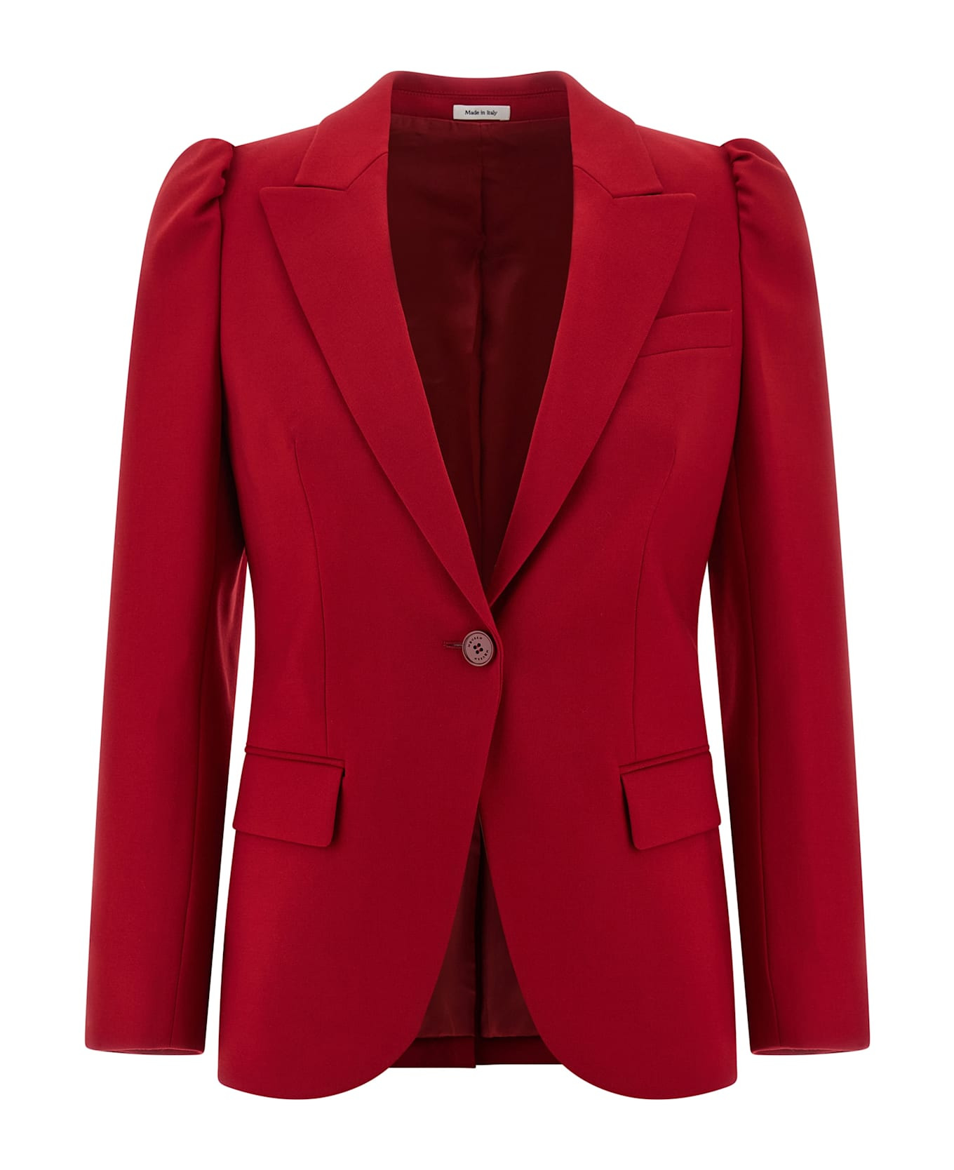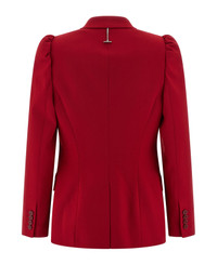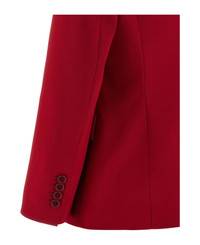 Single-breasted grain de poudre blazer with front button closure, peak lapels, chest pocket, flap pockets, structured shoulder strap with curl, long sleeves, back split, cupro lining. Composition: 98% wool, 2% elastane Made in: Italy Color: Red Size and fit: - true to size fit Model number: 848491QJAFK6191