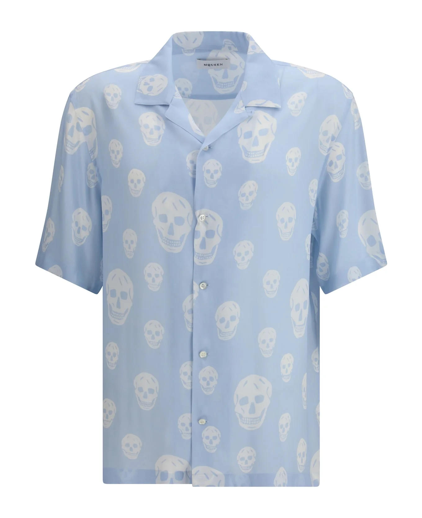 The skull-printed hawaiian shirt by alexander mcqueen reimagines a summer classic through the brand s bold and rebellious lens. featuring an all-over skull motif, it blends graphic impact with unmistakable attitude. the camp collar and chest pocket nod to traditional resort shirting, while the front button closure keeps the design clean and effortless. a statement piece that elevates relaxed dressing with mcqueen s signature edge. Composition: 100% % Viscose Made in: Romania Model number: 847304QRACU4602