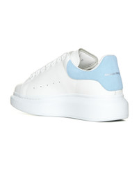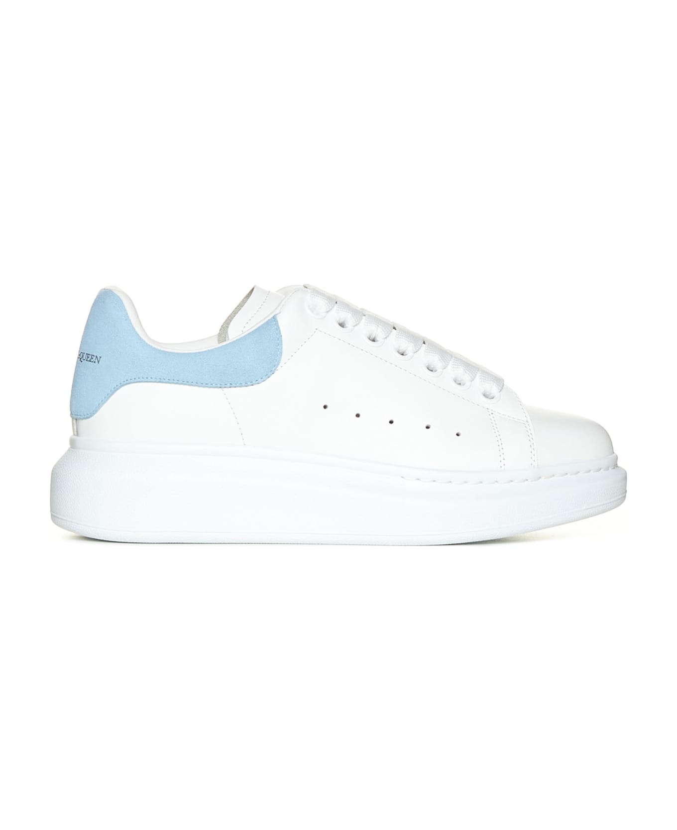Sneakers In Leather And Light Blue Heel