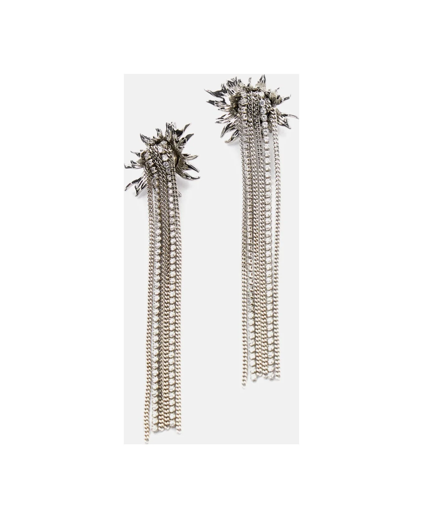 Height: 12 cm Metal parts in brass Palladium finish Sunflower design with cascading chain decorated with crystals Butterfly clasp Material: Brass Made in Italy Composition: 100% Brass Made in: Italy Color: Silver Model number: 847464J161B1021