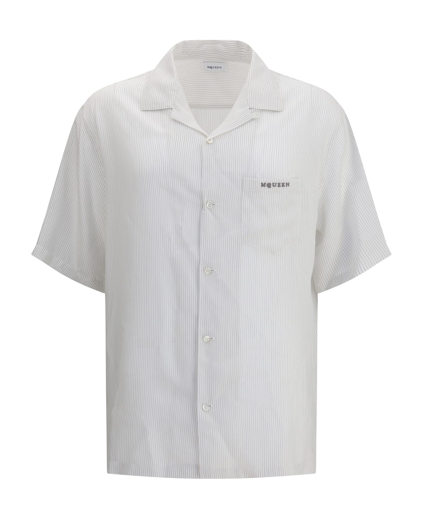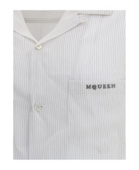 Alexander mcqueen's thin striped shirt reinterprets the classic hawaiian pattern with elegance and attention to detail. featuring a front button closure and a patch pocket on the chest, it is embellished with the embroidered logo that signs the garment with discreet sophistication. a perfect blend of relaxed fit and sophistication. Composition: 80% % Viscose, 20% % Polyester Made in: Romania Model number: 826631QRAB79228