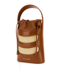 Two-tone Leather And Raffia Mini The Rise Bucket Bag