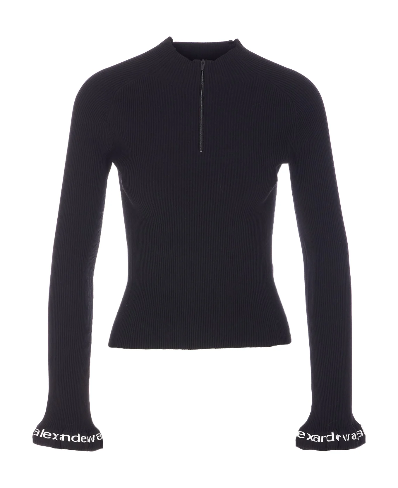 Alexander Wang black ribbed zip up turleneck pullover, half zip closure, long sleeves, long sleeves with logo, tight fit Composition: 88% Polyamide, 12% Elastane Made in: China Color: Black Size and fit: - US SIZE Model number: 4KC1261046001