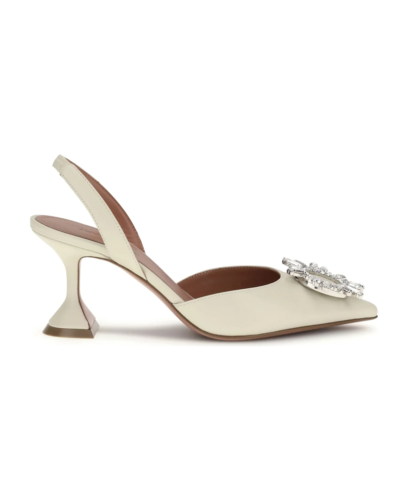 The begum pumps by amina muaddi are an icon of elegance and femininity. characterized by an elongated almond toe and a refined slingback detail on the heel, they feature a geometric leather heel that expresses all the brand's distinctive aesthetic. an embossed jewel, studded with rhinestones and diamonds, stands out on the toe, lending light and character. completing the design is a leather insole with a press-on logo for a final touch of understated luxury. Composition: 100% % Calf Leather Bos Taurus Made in: Italy Size and fit: - 7 cm Model number: 15S365640BEGALMOND