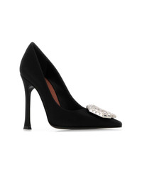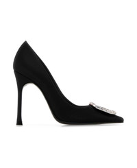 Black Satin Camelia 105 Pumps from Amina Muaddi Made in: Italy Color: SATINBLACKWHITEBUCKLE Size and fit: - Heel height: 10,5 cm Model number: CAMELIAPUMP105SATBLAWHIBU