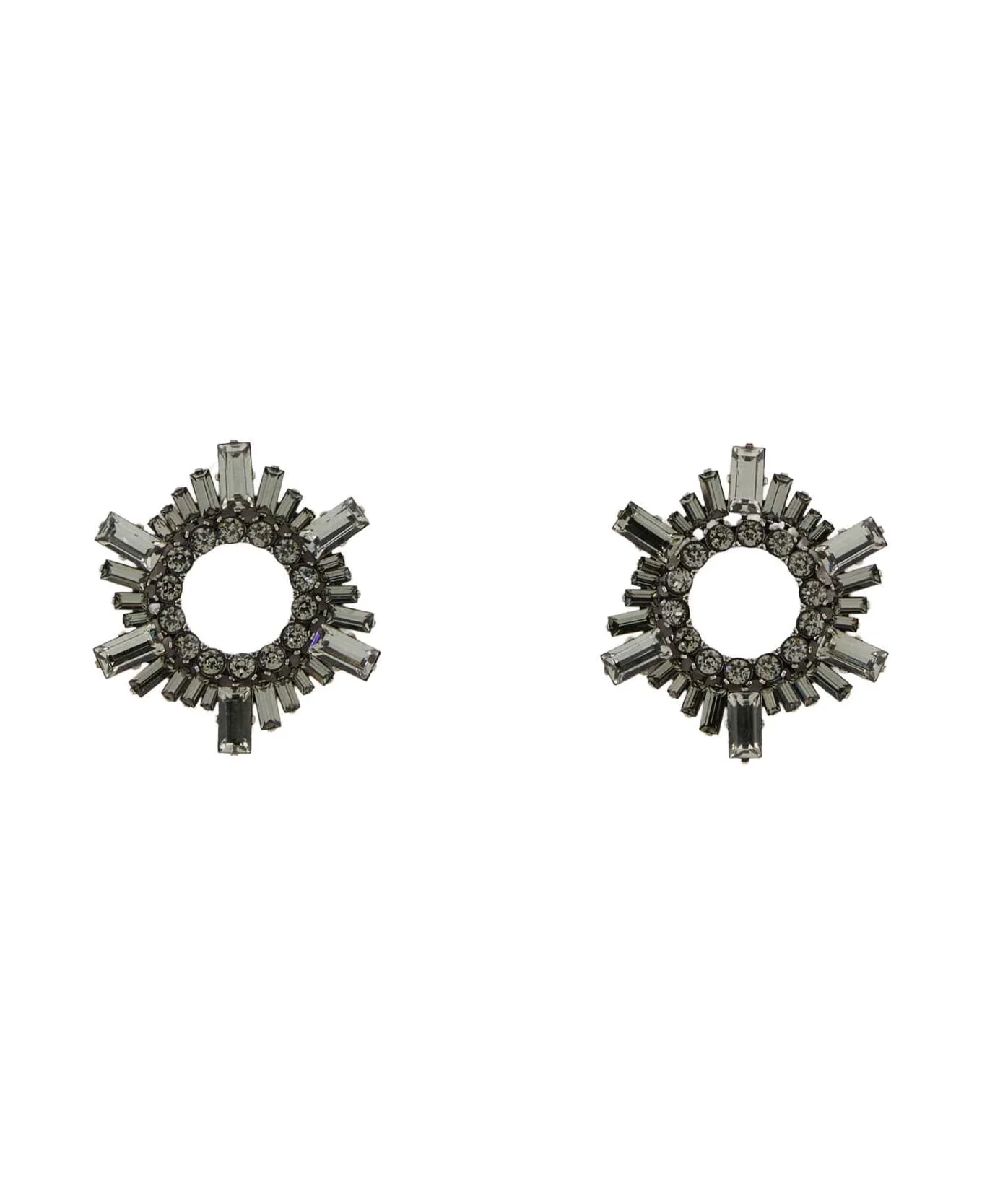 Embellished Metal Mini Begum Earrings from Amina Muaddi Made in: Italy Color: BLACKANTIQUESILVERBASE Size and fit: - Width: 4 cm Height: 5 cm Model number: BEGUMEARRINGMINIBLANTSILBAS