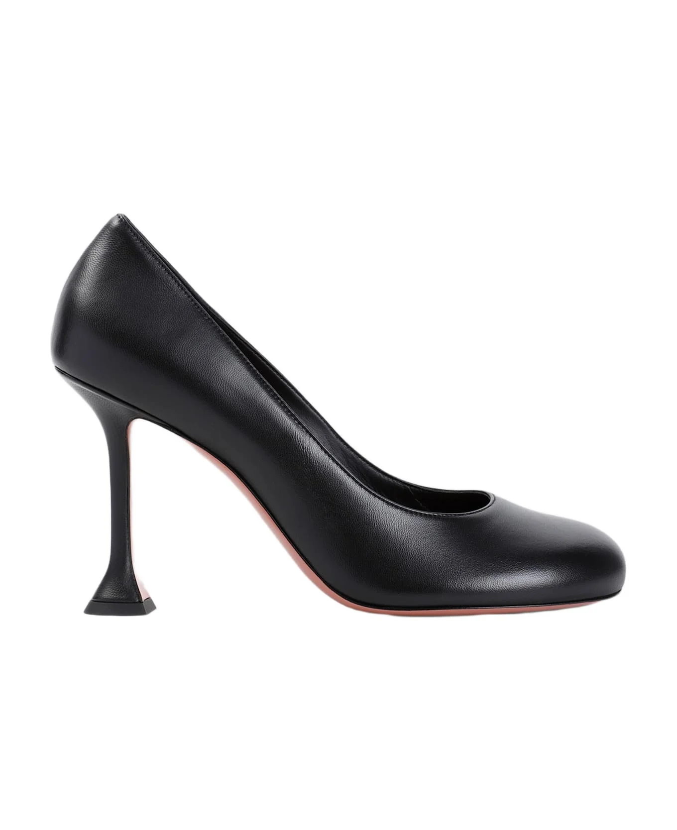 Amina Muaddi Iris Black Nappa Leather Pumps. Black nappa leather, round toeline, covered spool heel, leather lining, insole and outsole. Made in: Italy Color: Black Size and fit: - Heel high: 9,5cm Model number: 12S357481IRIBLACK