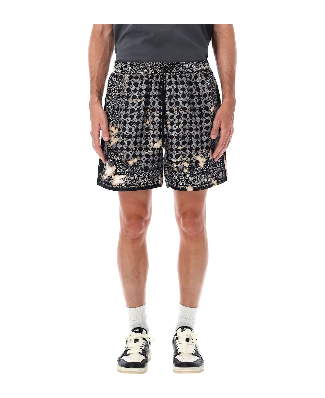 A Laid-back Staple With An Artisanal Twist, The Amiri Bleach Bandana Shorts Showcase The Brand s Signature Print Reimagined In A Sun-faded Bleach Effect. Designed For Effortless Comfort, They Feature An Elasticated Waist With Drawcord And Practical Side Pockets perfect For Relaxed Pre-fall Styling With A West Coast Edge. Silk Bleach-effect Bandana Print Detailing Elasticated Waistband With Internal Drawcord Side Welt Pockets Relaxed Fit Part Of The Pre-fall 2025 Collection Andrea Is 1,90 M And Wears Size L Composition: 100% silk Made in: Italy Color: BLACK Model number: AMSHCA1106BLACK