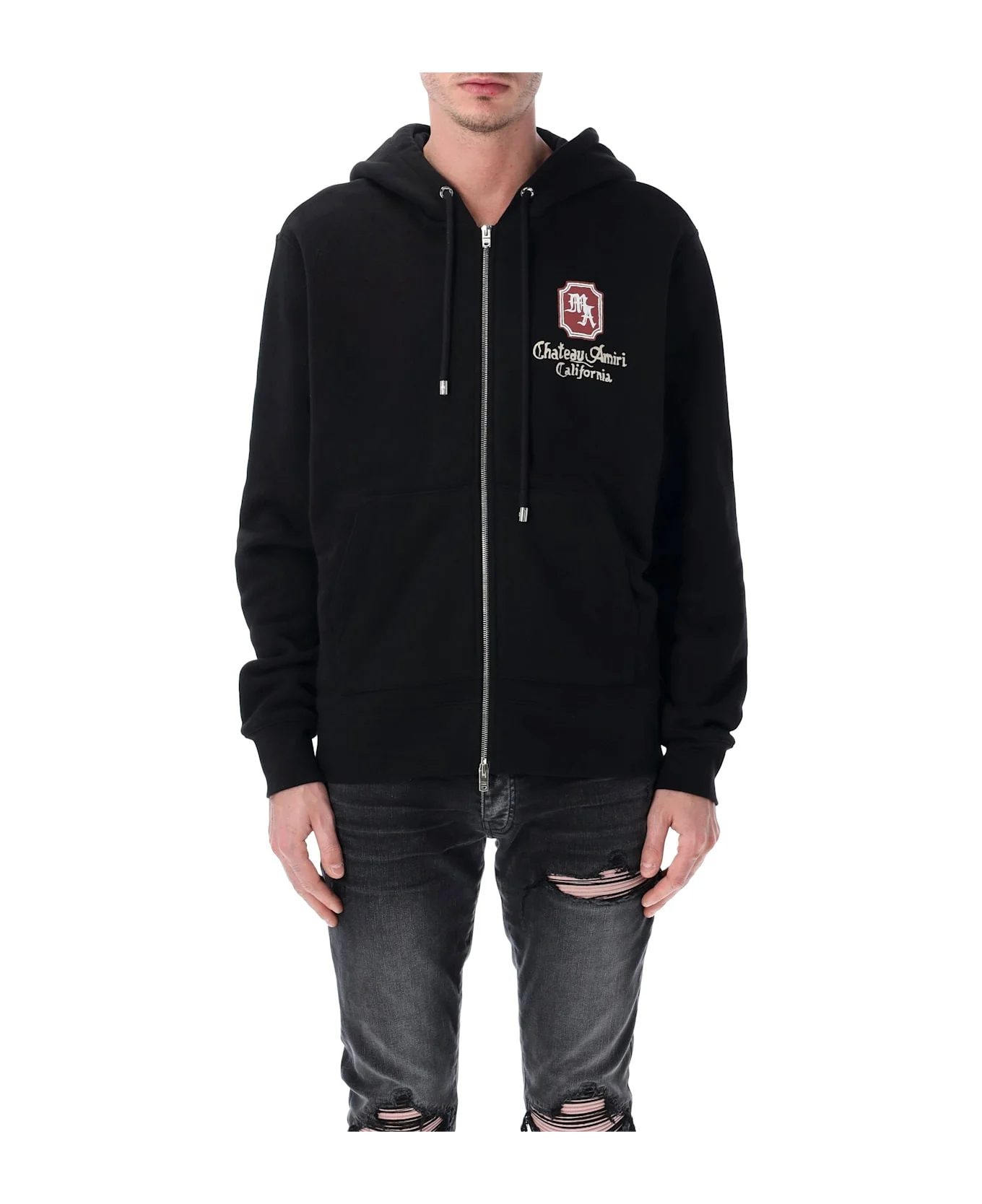 Crafted From Soft Cotton, The Amiri Ma Chateau Zip Hoodie Features Seasonal Logo Visuals For A Modern, Statement Look. Designed With A Relaxed Fit And Double-zip Closure, It Combines Comfort With Versatile Styling, Perfect For Layering Or Standalone Wear. Drawstring Hood Double-zip Closure Seasonal Logo Print At Chest And Back Front Pockets Long Sleeves Rib Trims Andrea Is 1,90 M And Wears Size L Composition: 100% cotton Made in: Italy Color: BLACK Model number: AMTOJR1098001