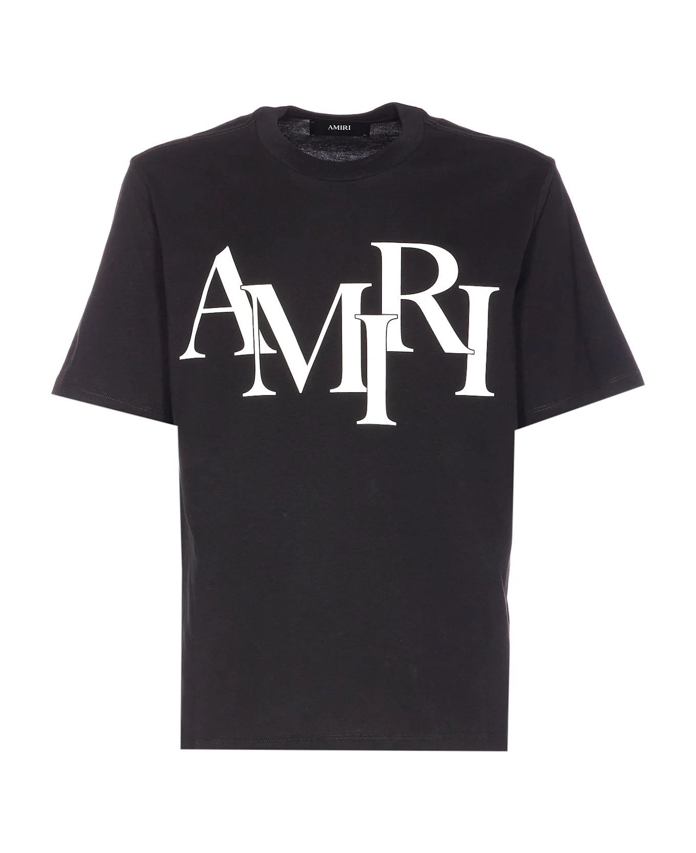 Amiri black staggered t-shirt, crewneck, print logo on the front Composition: 100% Cotton Made in: Italy Color: Black Size and fit: - US SIZE Model number: JYTE1149BLACK
