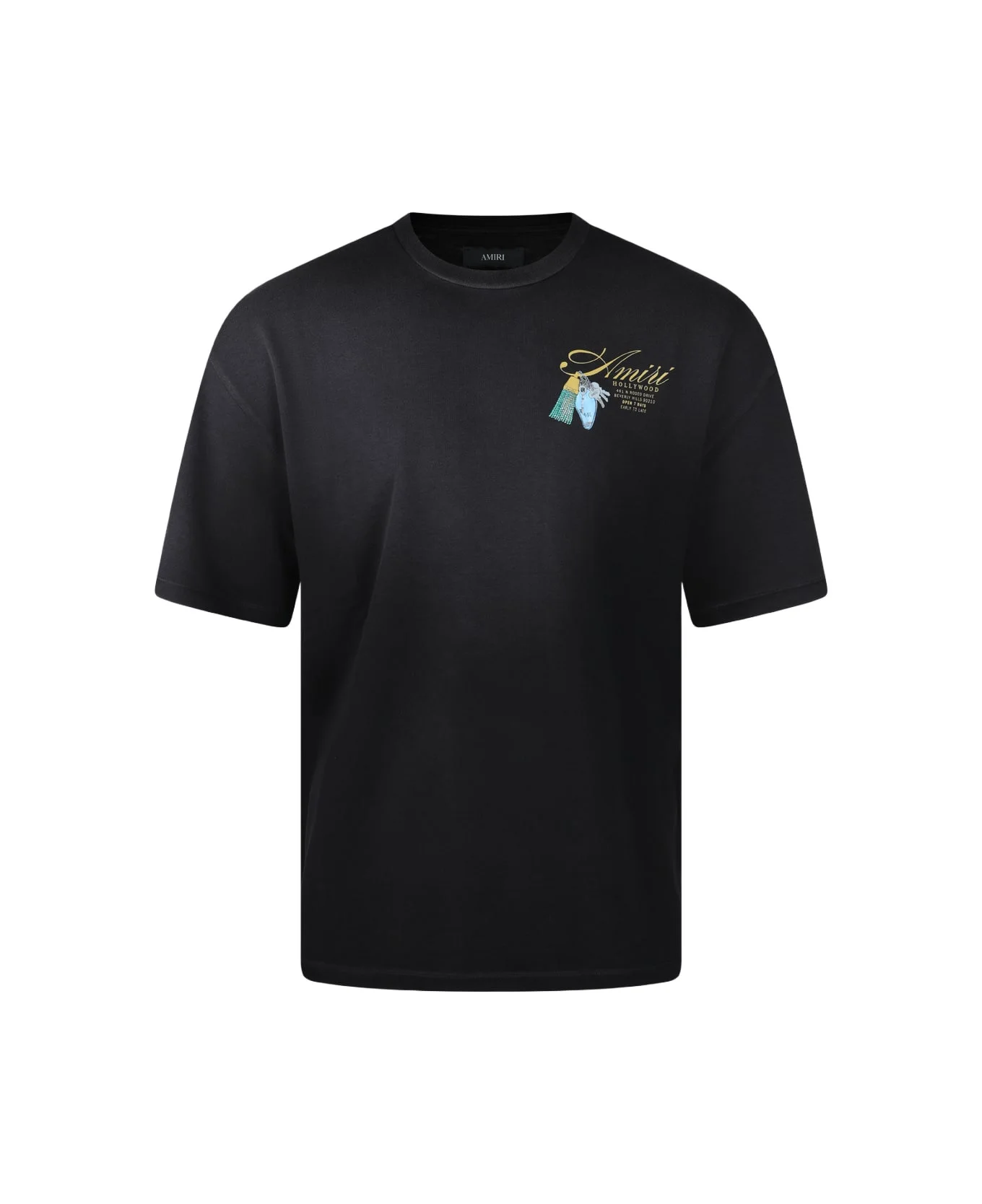 Black cotton t-shirt from Amiri featuring crew neck, short sleeves, heart logo print and regular fit. Composition: _, 100% Cotton Made in: Italy Color: Black Model number: AMTOJR1057001