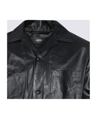 Black leather jacket from Amiri featuring short sleeves, buttons fastening, pockets and leather. Composition: _, 100% Le Made in: Trinidad and Tobago Color: Black Model number: AMLTIR1017BLACK