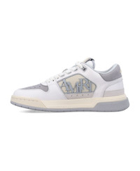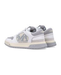 Classic Low Sneakers By Amiri. Featuring: Leather Upper Round Toe Star-shape Perforated Details Lace-up Fastening Side Panels Of Molded Rubber Mesh With The Amiri Staggered Logo Logo Plaque At Tongue Padded Low-collar Embossed Logo At Heel Counter Two-tone Rubber Sole Composition: Upper, 100% bovine leather Lining, 100% polyester Outsole, 100% rubber Made in: Vietnam Color: WHITE GREY Model number: AMFOSR1157GREY