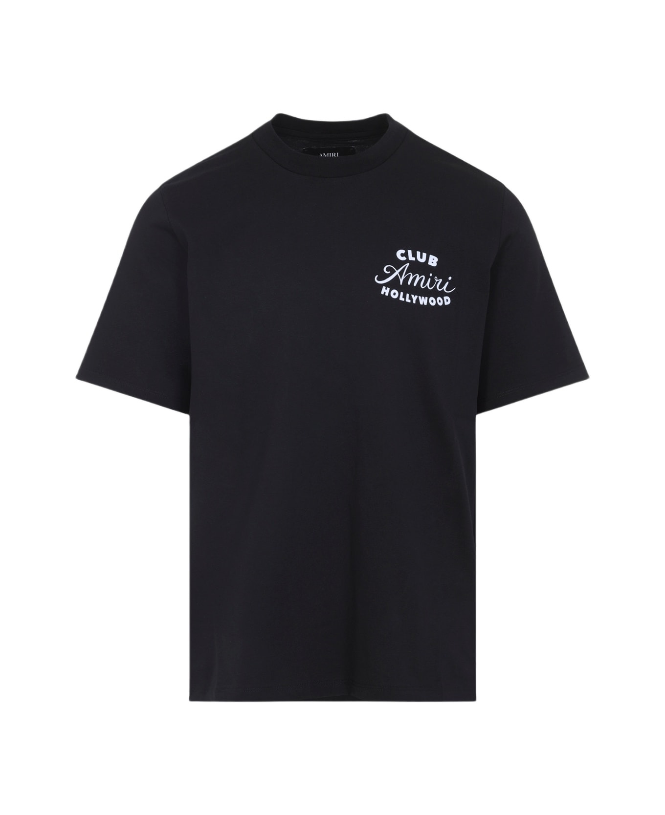 Amiri Club Black Cotton T-shirt. Crafted from black cotton jersey, round ribbed neckline, contrasting white "Club Amiri Hollywood" on the chest and back, dropped shoulders, short sleeves, straight hem. Made in: Italy Color: Black Model number: AMJYTE1254BLACK