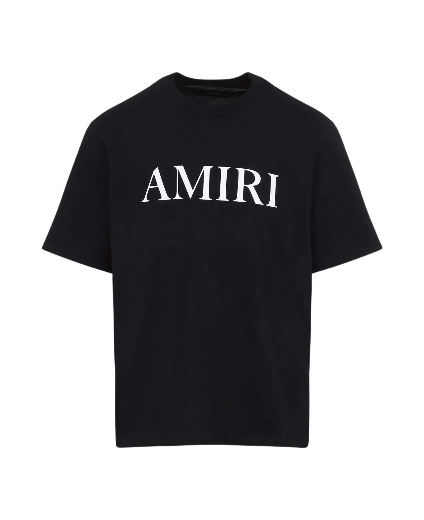 Amiri Black Cotton Core Logo Tee. Pure black cotton t-shirt, round neck, front contrasting white lettering logo, short sleeves, straight hem. Made in: Italy Color: Black Model number: AMJYTE1073001
