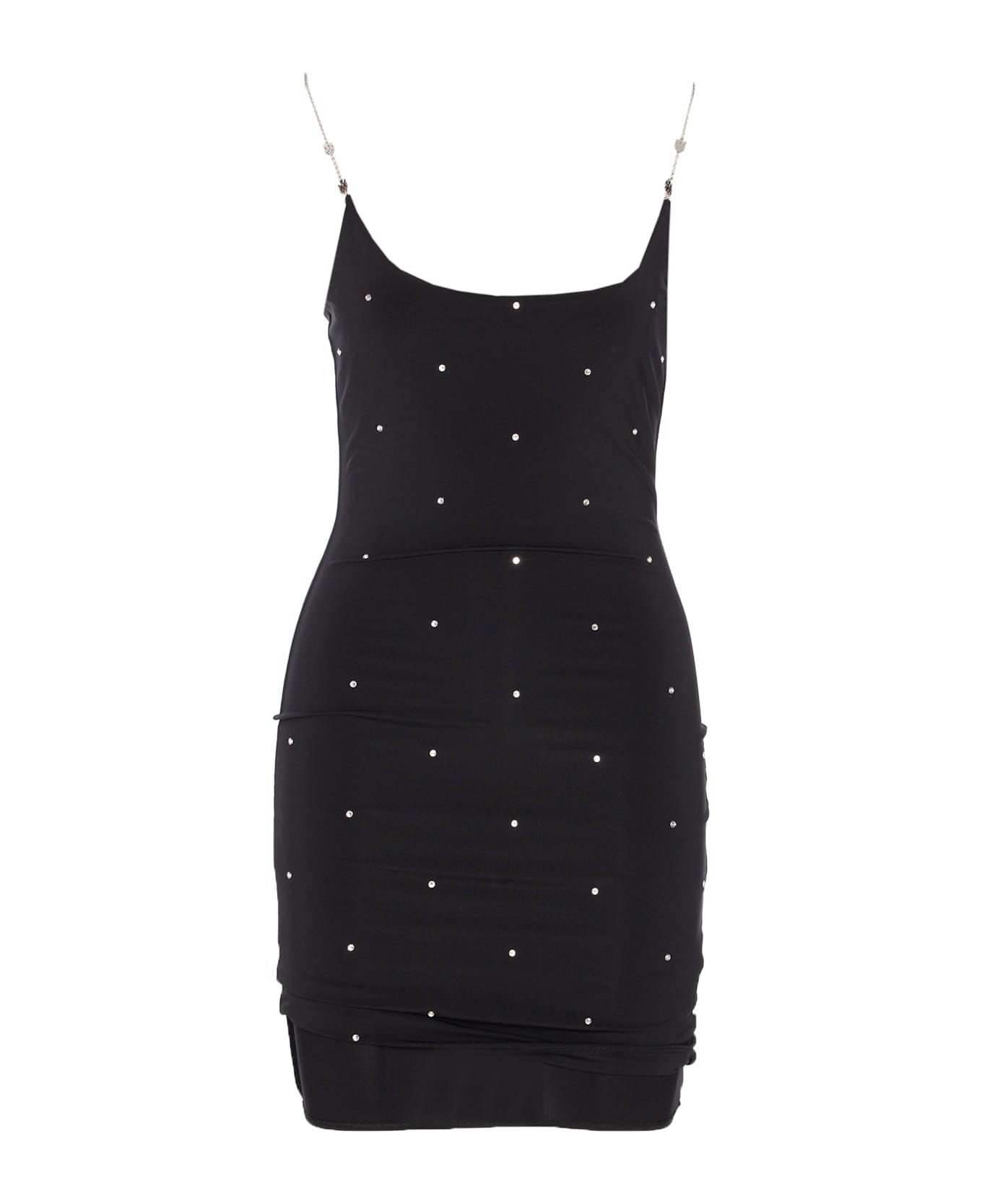 Amiri black crystal mini dress, zip closure on the back, all over crystals detail, chain shoulder Composition: 96% Viscose, 4% Elastane Made in: Italy Color: Black Size and fit: - EU SIZE (FR) Model number: DRCA1066BLACK