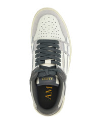 'Distressed Skel Top Low' sneakers with leather and suede panels with perforated details, lace-up closure, two-tone used-effect coated rubber sole. Each piece is meticulously crafted and inherently unique. The slight variations in the artwork are a natural result of the printing process and contribute to the distinctiveness of this product. Composition: 100% cow leather (Bos Taurus) Made in: Vietnam Color: Gray Size and fit: - EU MEN Model number: AMFOSR1168DARKGREY
