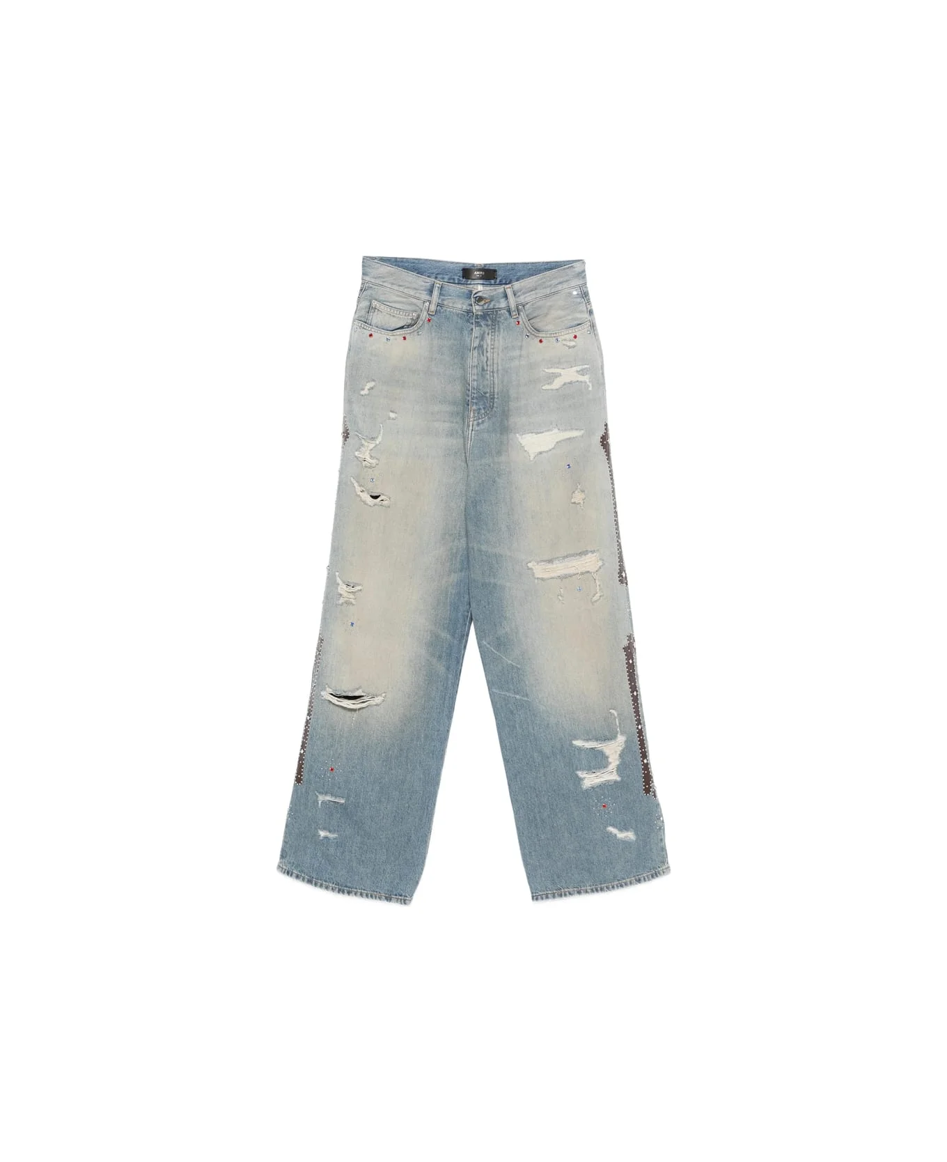 blue embellishments distressed effect five pockets belt loops Made in: Italy Color: BLUE Model number: AMBMJE1011DRIBL