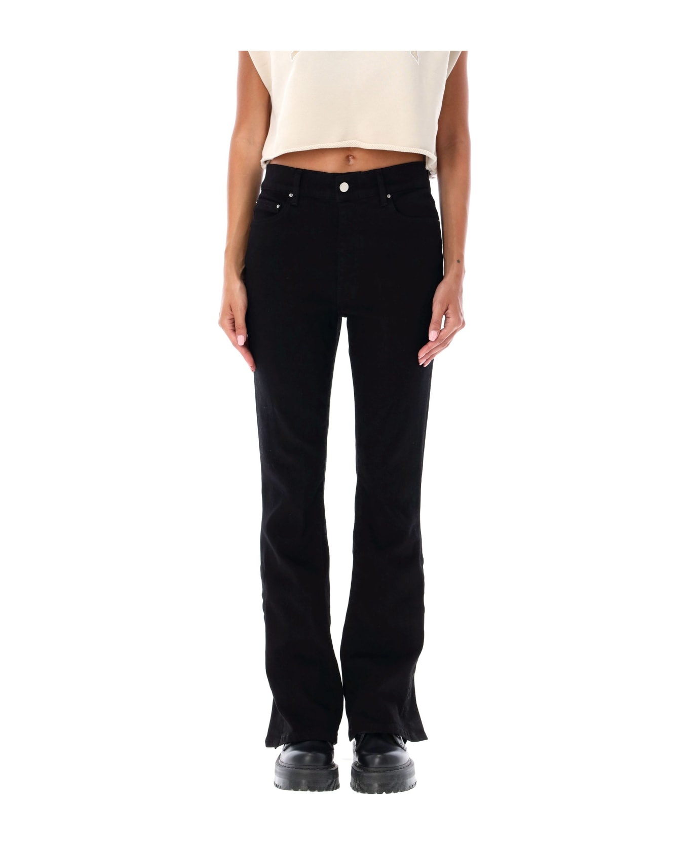Kick Flare Denim By Amiri. Featuring: Denim Fabric High-rise Fit Flared Leg Design Front Button And Zipper Closure Classic Five-pocket Style Belt Loops Model Is 1,72m And Wears Size 27. Composition: 97% cotton, 3% ea Made in: United States of America Color: BLACK Model number: AWDNFR1005DENIMBLACK