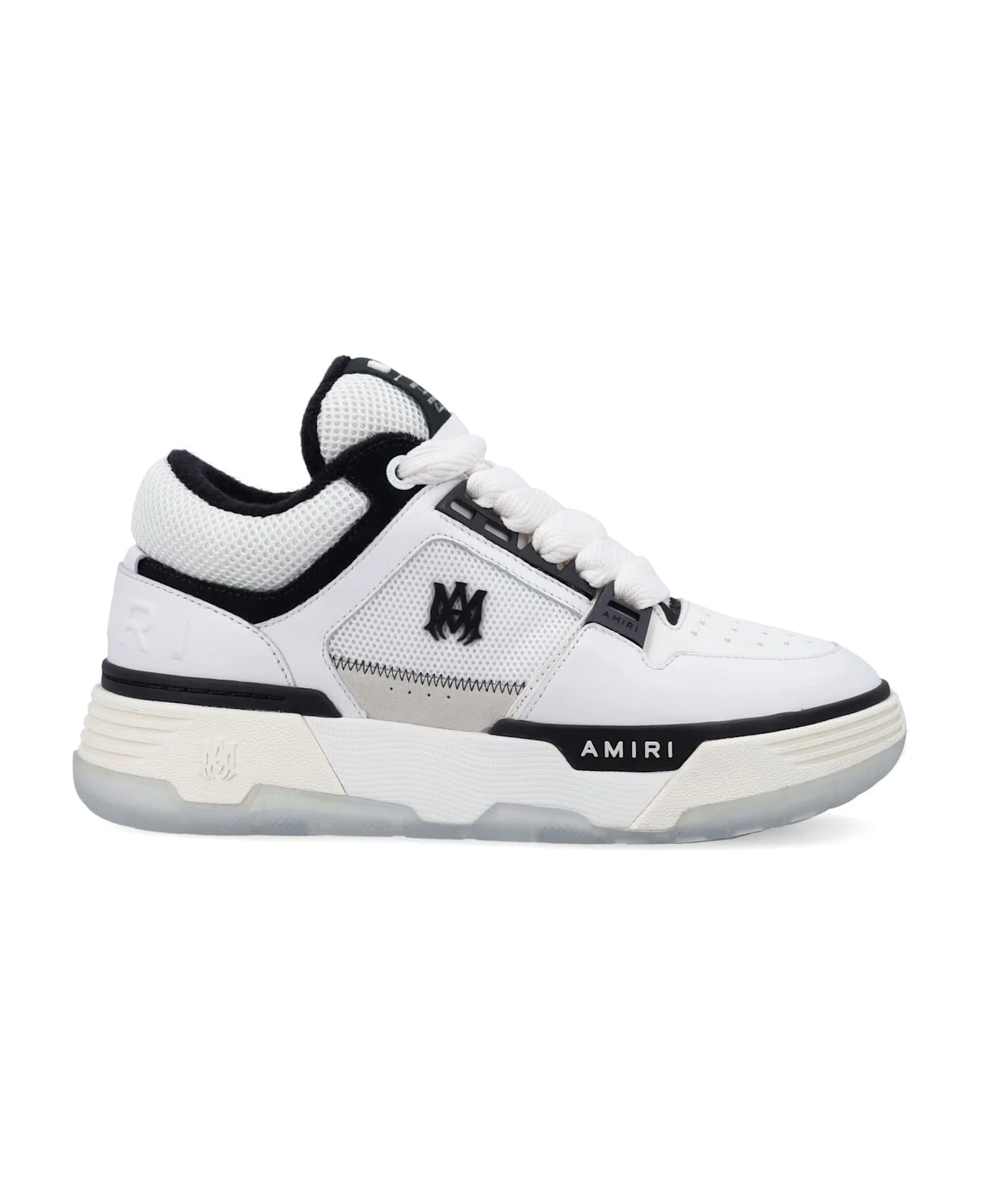 Ma-1 Sneakers By Amiri. Featuring: Leather And Mesh Upper Round Toe Stars Shape Perforated Details Bold, Amplified Silhouette Padded Tongue With Logo Label Padded Toweling Low-collar Exaggerated Rubber Outsole Embossed Logo At Back Monogram Logo Plaque At Side Composition: Upper, 100% cow leather, 100% polyester mesh Outsole, 100% rubber Made in: Vietnam Color: WHITE BLACK Model number: AMFOSR1097WB