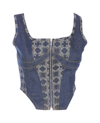 Amiri denim crop corset top, zip closure on the back, bustier model Composition: 97% Cotton, 3% Elastane Made in: Italy Color: Blue Size and fit: - US SIZE Model number: DNBU1012INDIGO