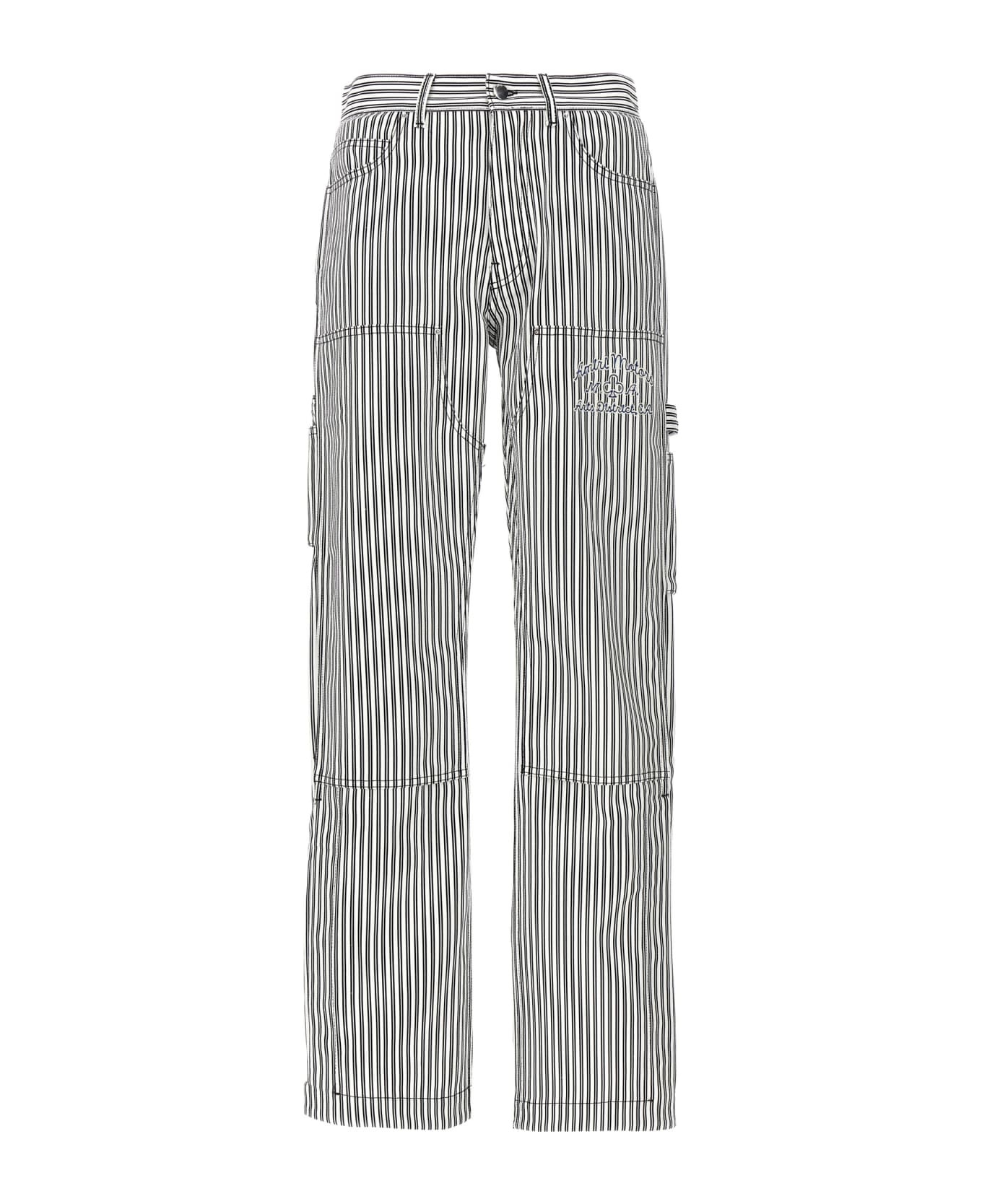 'Motors Carpenter' striped cotton pants with button closure, pockets, logo embroidery. Composition: 100% cotton Color: White/Black Size and fit: - true to size fit Model number: PS24MAW029BLACKWHITE