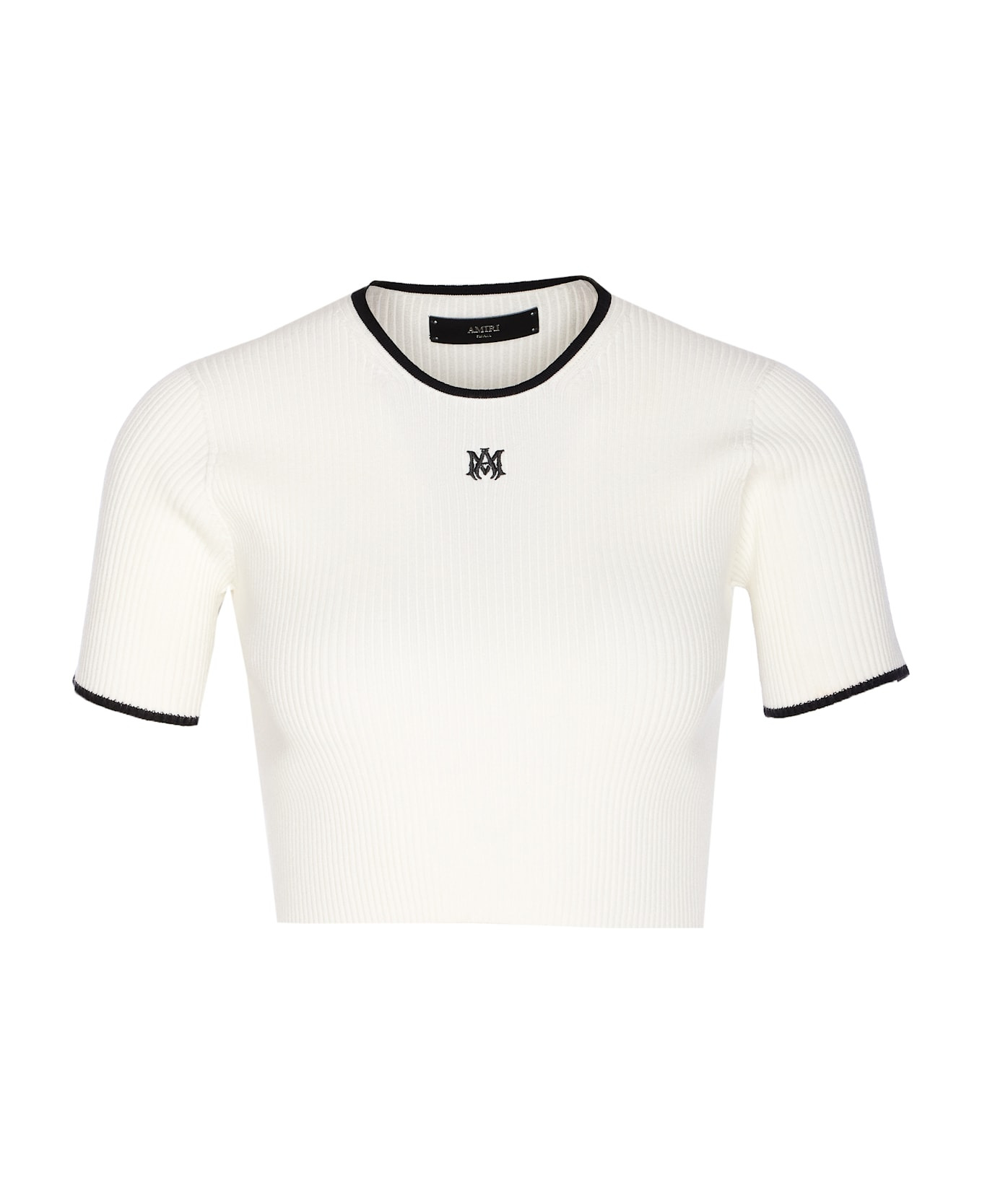 Amiri white My Baby t-shirt, crewneck, embrodiered MA logo on the front, crop model Composition: 70% Viscose, 30% Polyester Made in: Italy Color: White Size and fit: - US SIZE Model number: KNTE1008IVORY