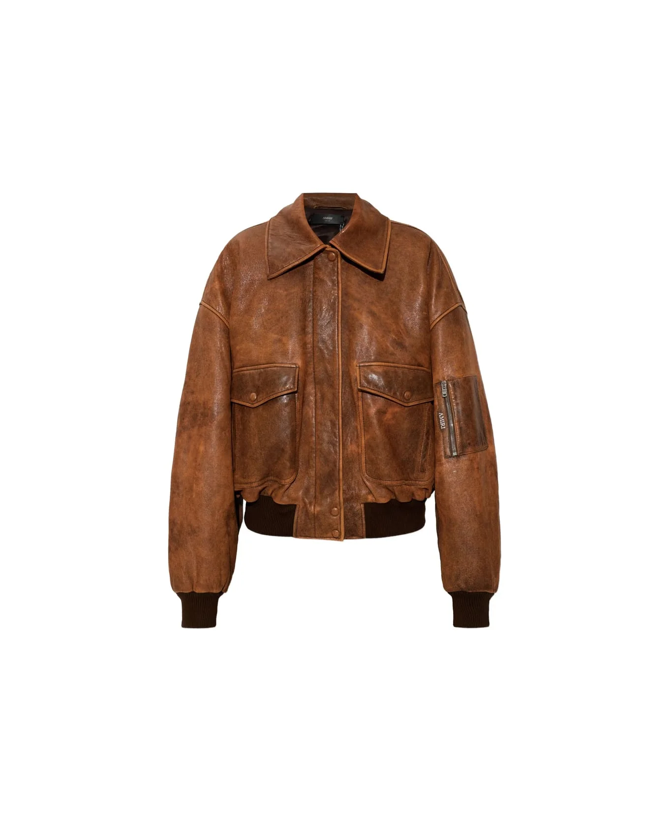 Tan Faded Leather Bomber Jacket