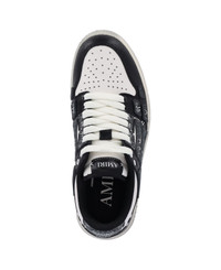 Amiri "Skel" low top sneakers in white leather with contrast finishes, round toe, lace-up closure, logo label on tongue, side leather patch, logo print pattern, gray leather back tab, logo embroidery detail, textured rubber sole, side embossed logo detail. Composition: 100% Leather Made in: Vietnam Color: Black Model number: AMFOSR1140BLACK