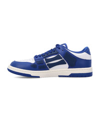 Skel Top Low Sneakers By Amiri. Featuring: Leather Upper Round Toe Perforated Details Lace-up Fastening Logo Patch At Tongue Signature Skel Applique Two-tone Rubber Sole Padded Low-collar Additional Laces Included Composition: Upper, 100% cow leather Lining, 100% polyester mesh Outsole, 100% rubber Made in: Vietnam Color: BLUE WHITE Model number: AMFOSR1047BW
