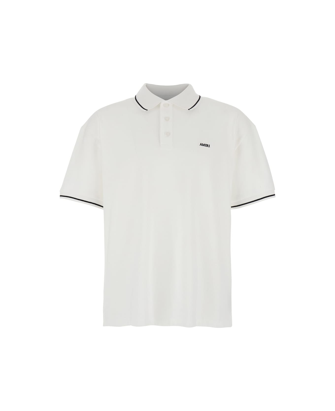 Polo shirt White Classic collar Short sleeves Striped detail on collar and sleeve Front button closure Logo lettering embroidery on the front Straight hem Cotton Regular fit Composition: 100% Cotton Made in: Italy Color: White Model number: AMJYPO1018WHITE