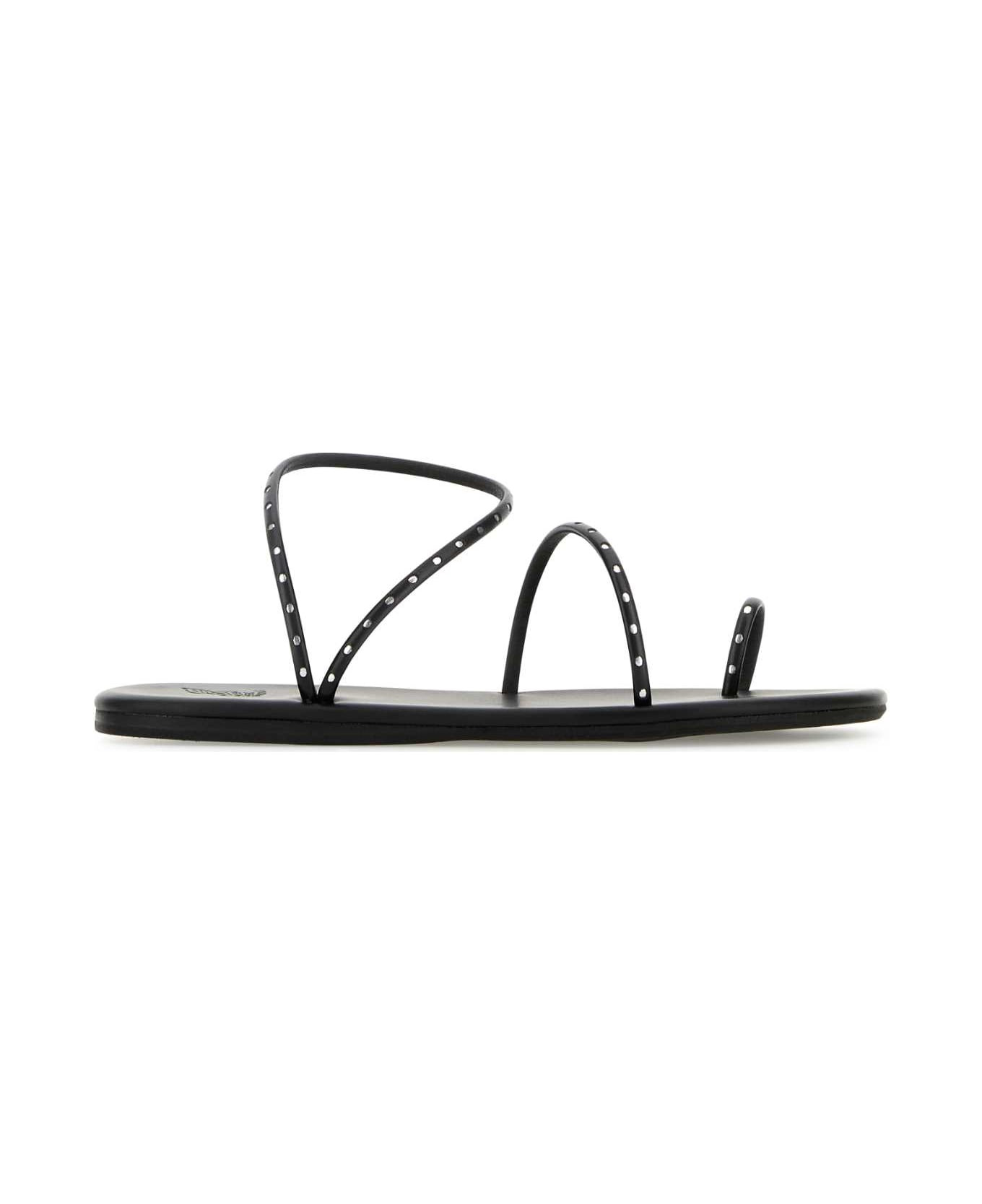 Black Synthetic Leather Astro Thong Sandals
