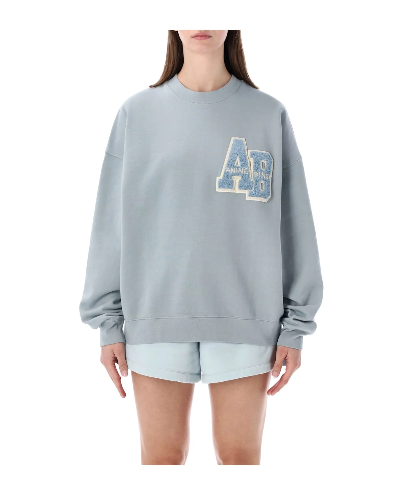 Anine Bing s Miles Oversized Sweatshirt Delivers A Refined Take On Casual Wear With A Collegiate Influence. Crafted From Midweight Organic Cotton Fleece, It Comes In A Soft Pastel Blue Shade And Features A Relaxed, Oversized Silhouette. The Signature Letterman Chenille Patch With Logo On The Chest Adds A Bold Yet Understated Graphic Touch, Perfect For Elevated Off-duty Styling. Organic Cotton Fleece Crew Neckline Oversized Fit Letterman Chenille Chest Patch Long Sleeves Ribbed Finishing Alessandra Is 1,75 M And Wears Size S Composition: 100% cotton Made in: Turkey Color: LIGHT BLUE Model number: A0812148LH16